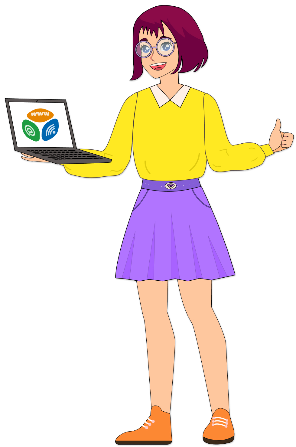 Маскот Ариша ...Ариша весёлая, трудолюбивая и любознательная, увлекается программированием. Цвета одежды персонажа выбраны не случайно: желтый означает интеллект и оптимизм, он помогает улучшить память и внимание; фиолетовый - помогает наполниться вдохновением; а оранжевый - повышает творческую активность
