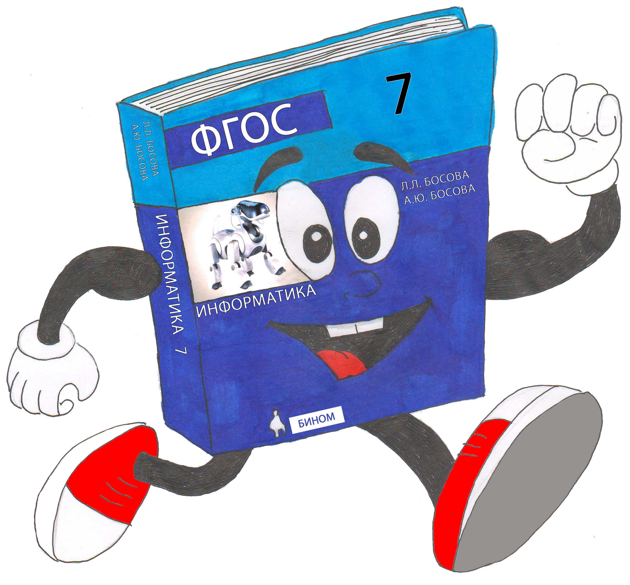 Маскот ИнфоБук ...Я изобразила маскота в виде учебника по информатике. Этот персонаж умный, весёлый и добрый. Он спешит на помощь тем, кто нуждается в знаниях и хочет их получать. А еще ИнфоБук любит перекусить на досуге парой-тройкой гигабайт оперативной памяти или жесткого диска