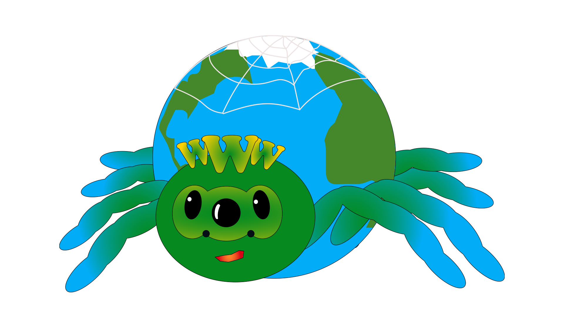 Маскот Web-скакунчик ...Это паучок, который не сидит на месте и постоянно развивается, окутывая своей сетью весь наш мир, именно поэтому он окрашен в цвета нашей планеты и по форме напоминает её