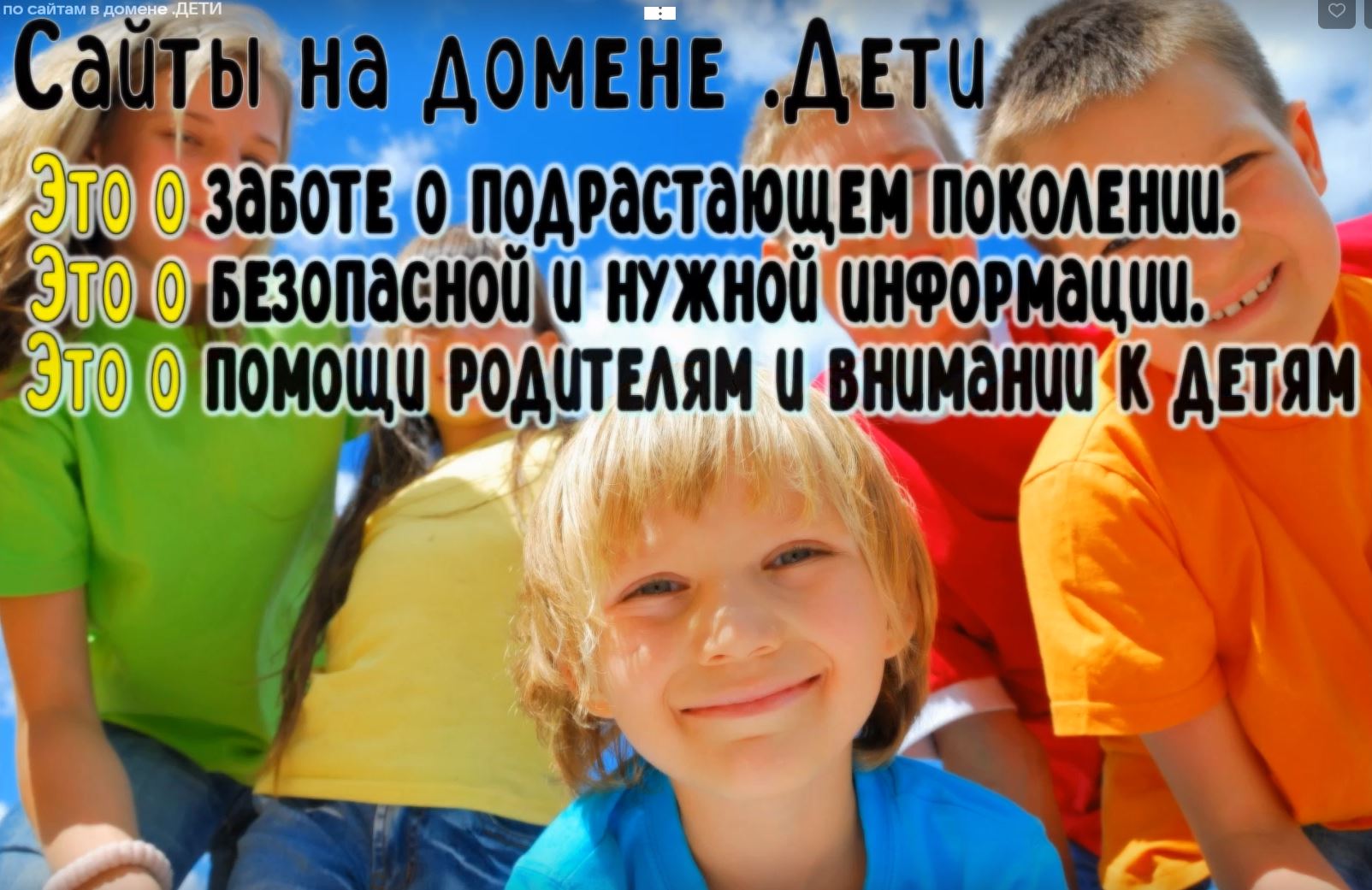 Отметим, что домен .ДЕТИ объединяет русскоязычные сайты для детей и подростков. Это одно из самых безопасных интернет-пространств: противодействие «зловредам» на сайтах, работающих в домене .ДЕТИ, осуществляется с помощью мониторинга нежелательного контента, который работает круглосуточно 365 дней в году. Зарегистрировать основной или дополнительный адрес для сайта в .ДЕТИ – значит стать частью позитивного пространства Рунета, участвовать в развитии онлайн-островков безопасности и наполнении интернета полезным контентом. У проекта «Изучи интернет - управляй» с недавних пор появилось два дополнительных адреса в .ДЕТИ: изучиинтернет.дети и незрячим.дети (образовательный модуль для незрячих пользователей интернета).